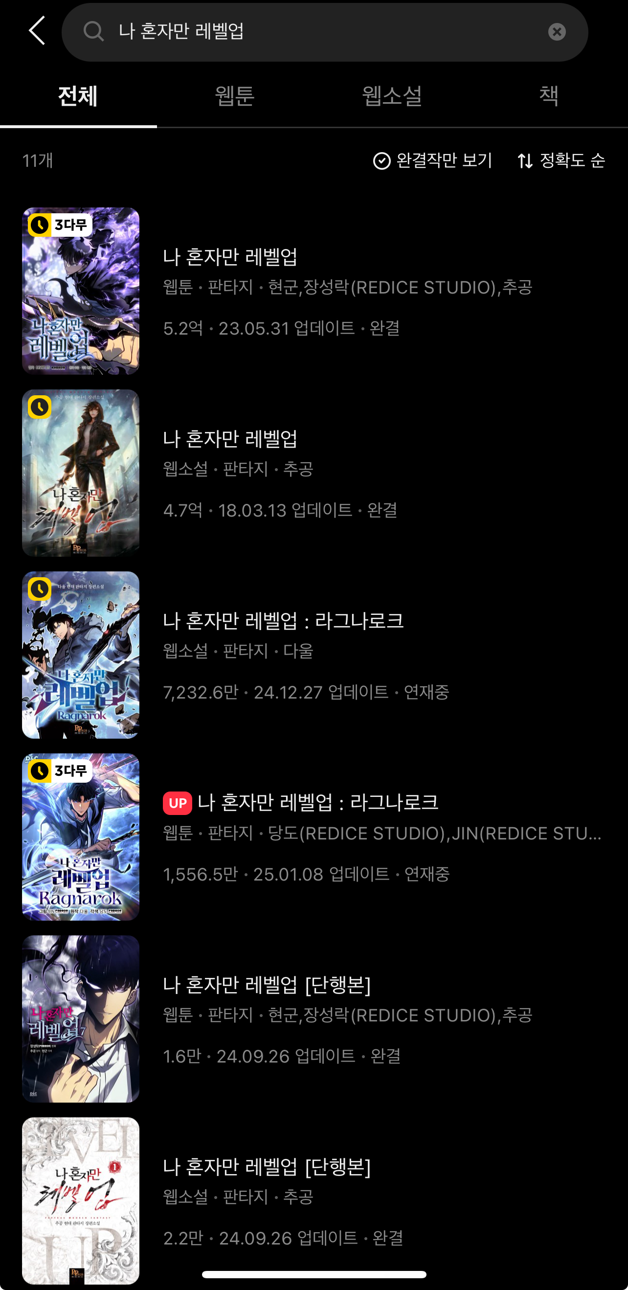저는 카카오페이지에서 이 작품을 정주행했습니다. 웹툰이 외전까지 나와서 팬들에게 사랑받는 카카오페이지 작품들 중에 돋보이는 작품이 <나 혼자만 레벨업>