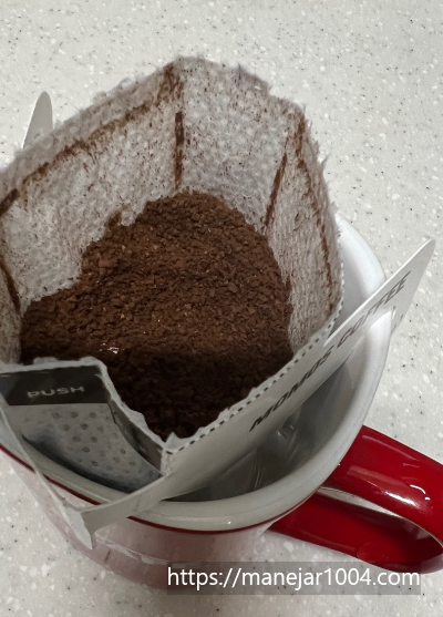 보통 드립백과 달리 옆으로 퍼지니까 어떠한 머그잔이든 걸칠 수가 있어서 잔 선택의 폭이 넓어졌어요. 드립백 커피는 항상 네모진 잔을 이용했는데, 모모스 드립백은 둥글고 입구가 큰 컵도 걸칠 수 있었어요.