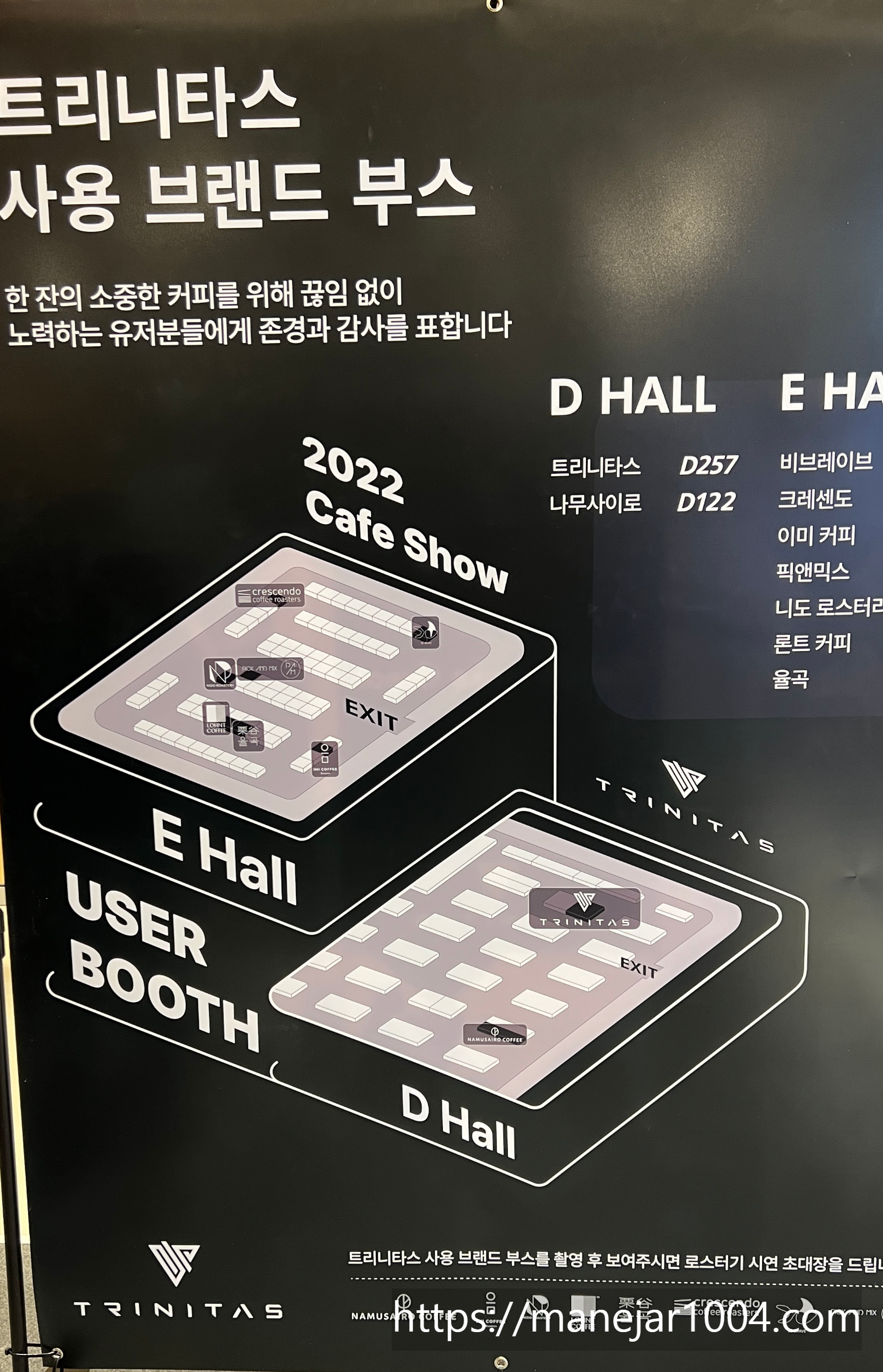 트리니타스 사용하고 있는 부스안내까지, 더욱 신뢰가 가네요. 카페쇼에 참관하고 있는 부스의 커피맛까지 볼 수 있으니, 더욱 확실한 홍보가 아닐까하는 생각이 들었습니다. 실제로 제가 구매할 시점이 된다면 사용하고 싶은 로스터기입니다.