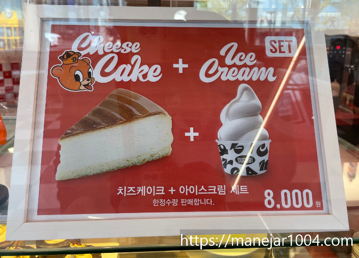 set 구성이 독특해서 찍었어요. 치즈케이크 +아이스크림 세트 8,000원.