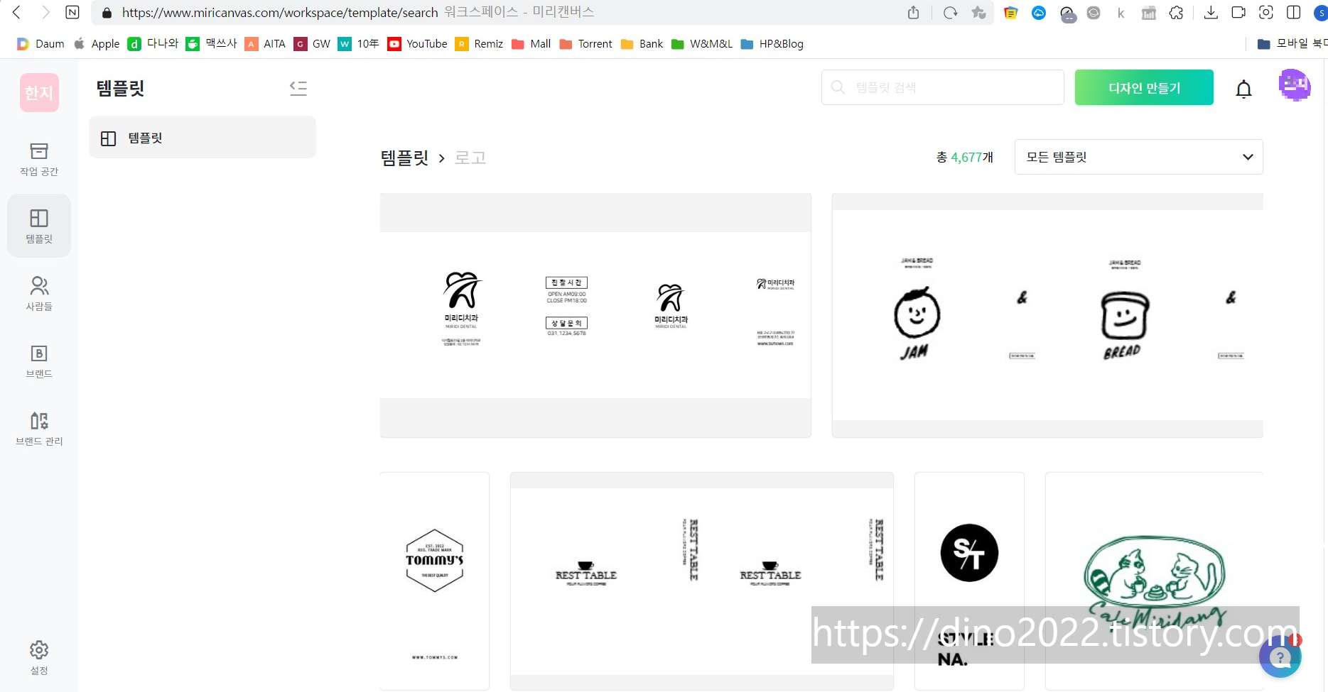 원하는 템플릿을 검색해서 찾아서 원하는 디자인을 선택 후 수정하면 된다.