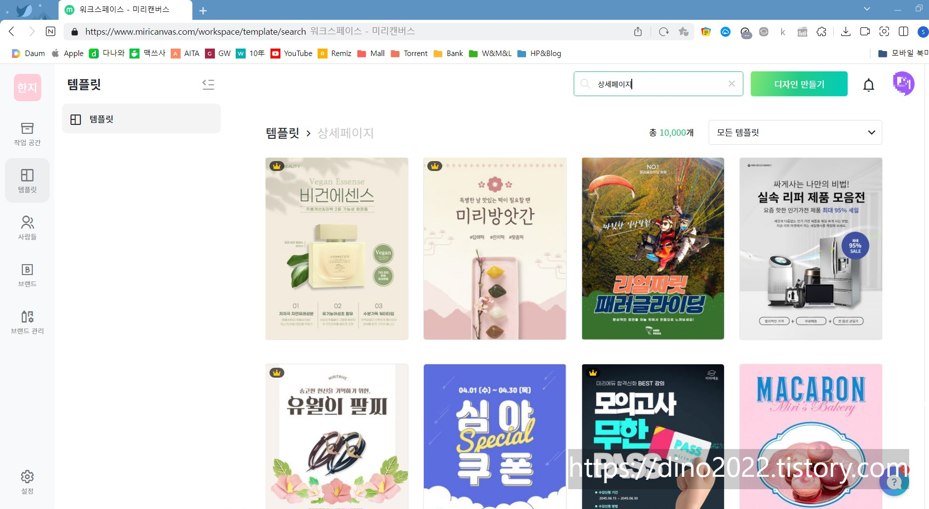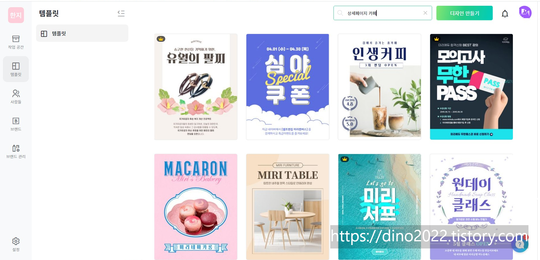 템플릿에 원하는 검색어를 치면 다양한 디자인을 검색해준다.
