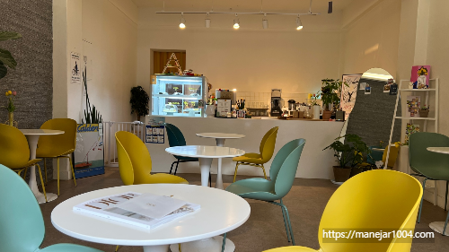 창가 쪽으로 자리 잡았습니다. MYC CAFE 뜻 : Me and Your Cafe