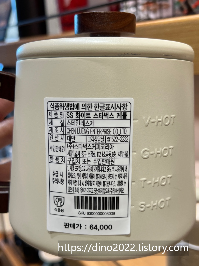 스벅의 다양한 텀플러 및 할로윈 굿즈도 보다가 발견한 핸드드립용 주전자. SS화이트 스타벅스 케틀 가격이 64,000원인데, 가열,조리용이 불가하다니... 가성비는 좋지 않으나, 예쁘긴 하네요. 그야말로 홈카페 인스타용 사진용.😊