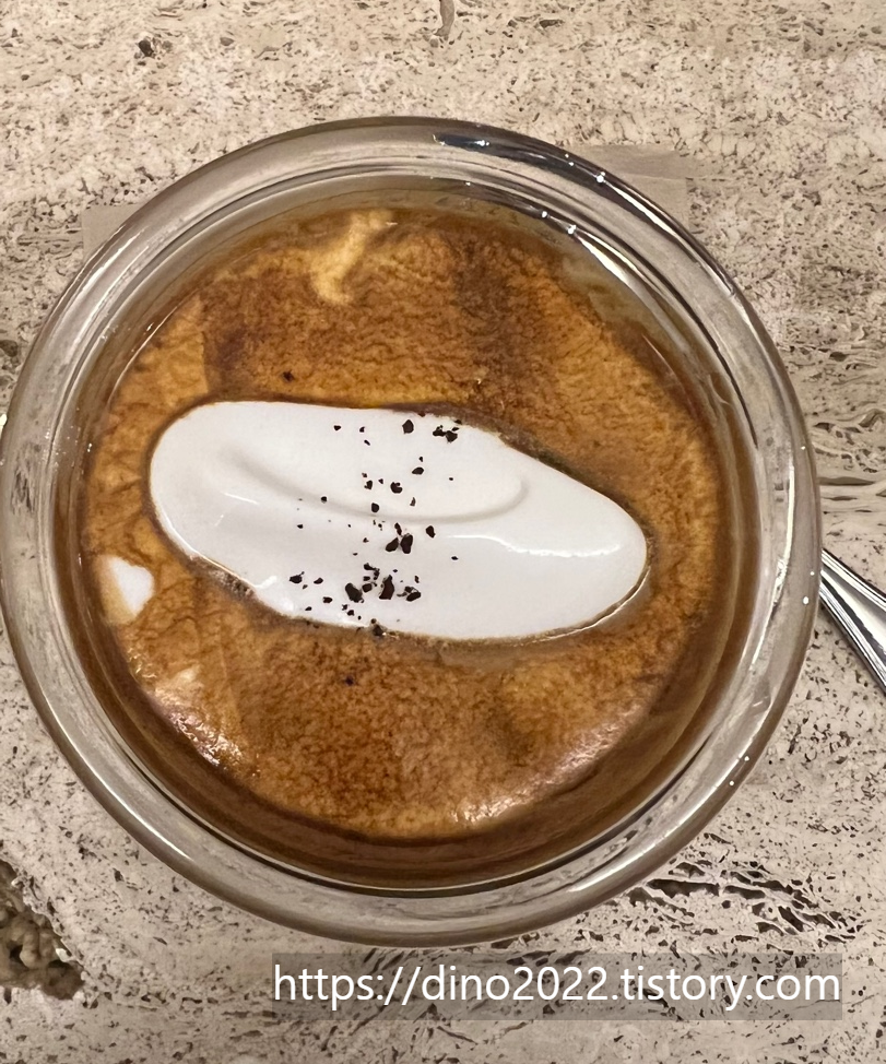 아인슈페너 뜻을 찾아보면 보통 아메리카노에 크림을 올린다로 많이 나오는데 이곳 태양커피는 3가지 중 선택해서 주문하는 시스템이었습니다. 친구가 먹어본 것은 2번. 그래서 저도 동일한 걸로 주문했어요. 주문한 커피가 나오면 테이블에 가져다주시고 먹는 방법도 알려줍니다. 우선 위에 크림을 먼저 먹어보고 섞지말고 컵에 입대고 그대로 먹으면 된다고 합니다. 저도 아인슈페너 여러 곳을 먹어보았지만 이번에 마신 아인슈페너가 더 맛있게 느껴졌어요. 이렇게 선택권 없이 보통 아메리카노위에 크림이 올라가 있던데, 여기는 크림도 진해요. 보통 부드러운 크림을 소프트하게 올라가 있는데 태양커피는 질감이 느껴지는 크림의 무게와 에소, 우유의 조화가 첫입 먹고 맛있다. 란 말이 나오는 커피맛집 맞았습니다.