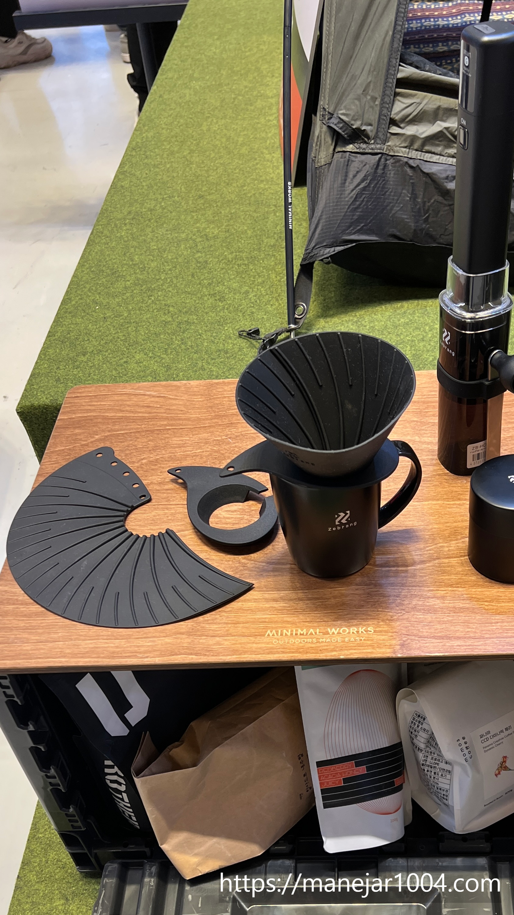 3층에서 본 하리오 아웃도어부스. 너무 예쁜 캠핑용품에 잠시 머물러서 구경했습니다. 요즘 인스타에서도 자연속에서 커피를 내려먹는 다양한 릴스를 보고 있었는데 이렇게 보니 괜히 반가웠습니다.