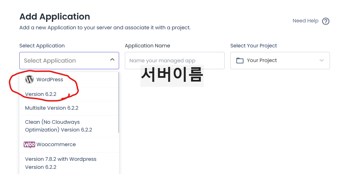세 개의 점을 클릭하면 나오는 Add Application 클릭하면 새로운 워드프레스를 추가하게 됩니다.