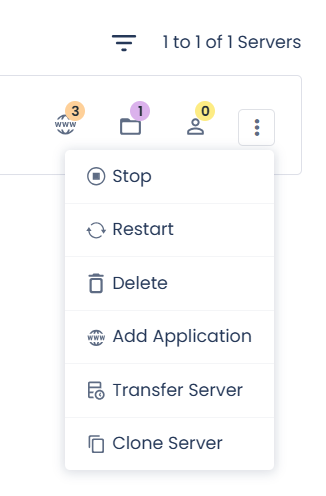 클라우드웨이즈를 로그인 후 서버에서 맨 끝에 점 세개를 클릭합니다.