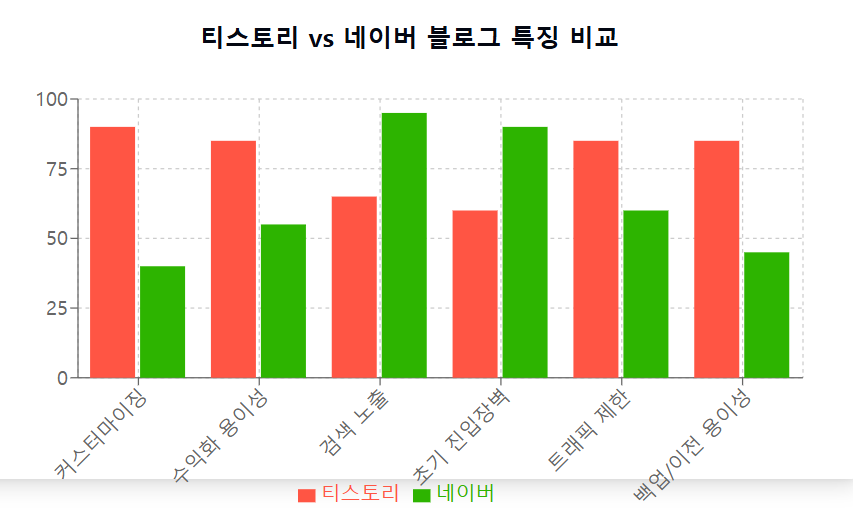 - 티스토리: 초기 설정과 커스터마이징에 어느 정도 기술적 지식 필요
