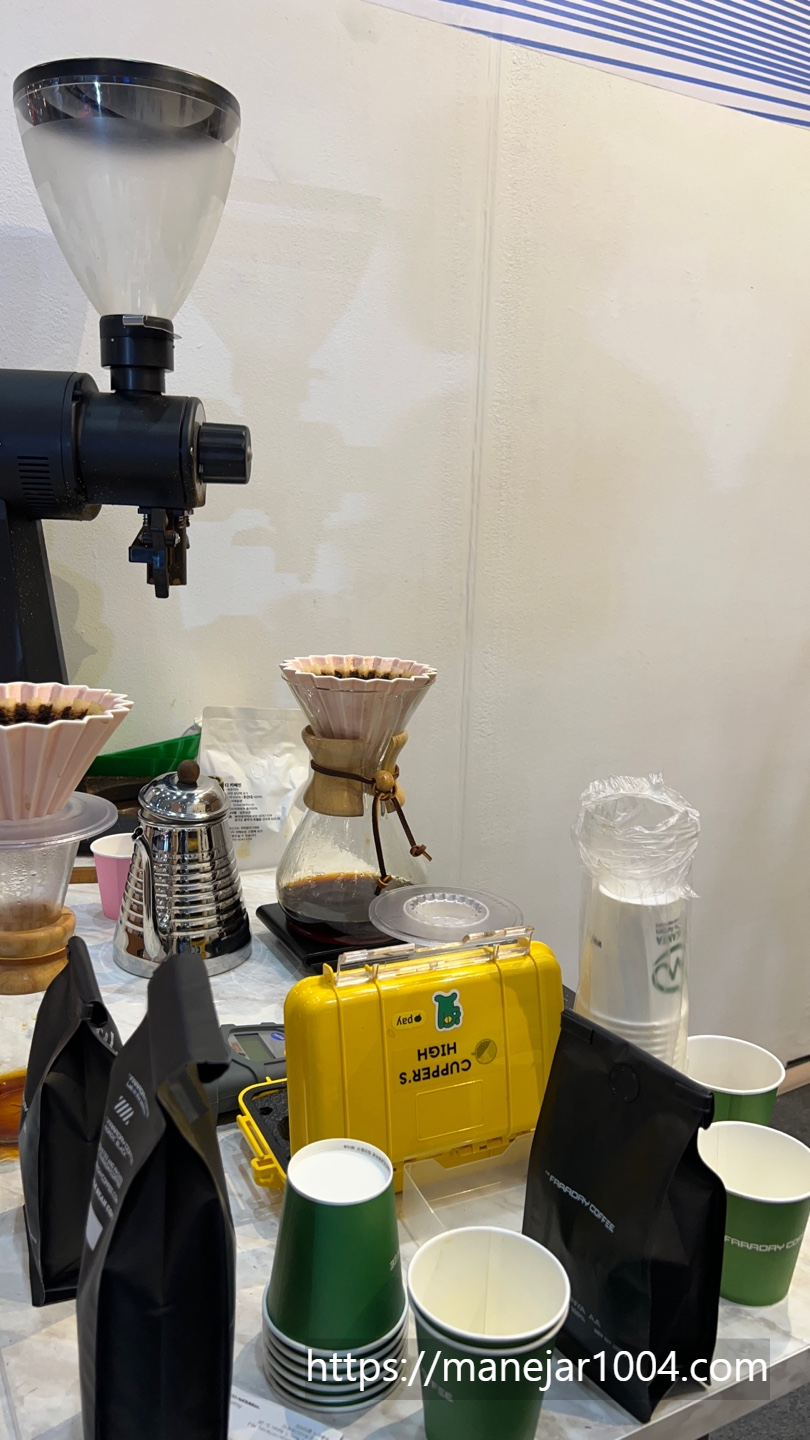 "시음하고 가세요" 홀린 듯 마셔본 커피가 너무 맛있는거에요. 머물러서 커피에 대한 이야기를 나누면서 원두에 대한 설명과 브루잉으로 내릴 때 푸어양까지 알려주셨던 친절한 부스입니다.