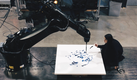 SPACES 전시회에서 가장 인상적인 작가 Sougwen Chung 작품이었다고 합니다. 중국계 캐나다 아티스트로 TIMES100이 선정한 최고의 AI 와 협업하는 아티스트입니다. 그녀의 사람과 기계 협업 작품은 런던이 빅토리아 앤 알버트 박물관에서 최초로 AI 모델을 소장한 작품이 되었고, 이는 AI와 사람의 협력이 만들어낸 혁신적인예술 형태를 보여주는 중요한 사례가 되었습니다.