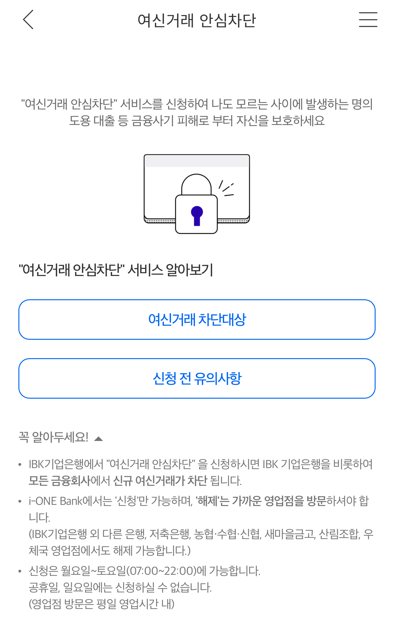 - 여신거래 안심차단 신청하세요